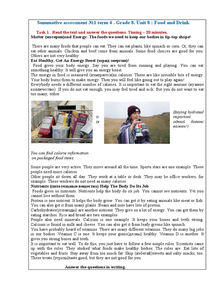Grade 8.food and Drinks. (Summative Assessment 1, 4 Term) PDF Foods